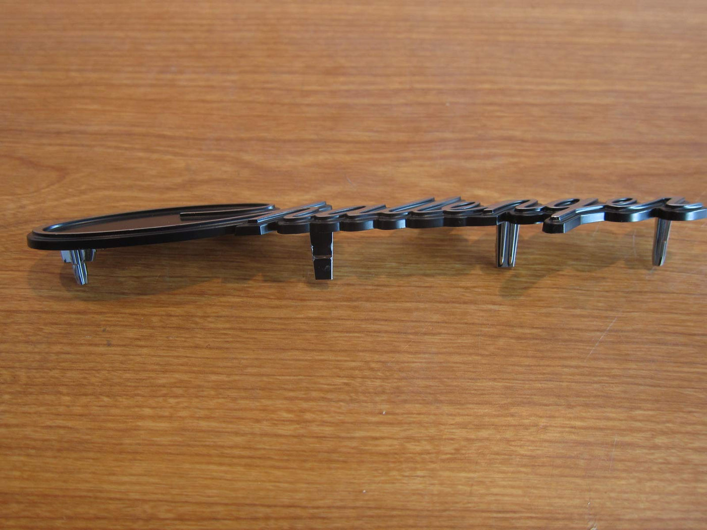Q: How do I care for the chrome finish on the nameplate?A: To maintain the chrome finish, clean it regularly with a soft cloth and mild soap to prevent tarnishing. Avoid abrasive cleaners that could scratch the surface.