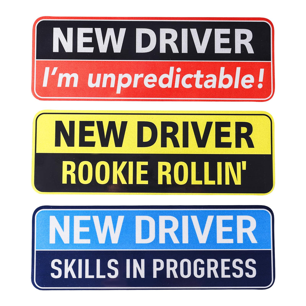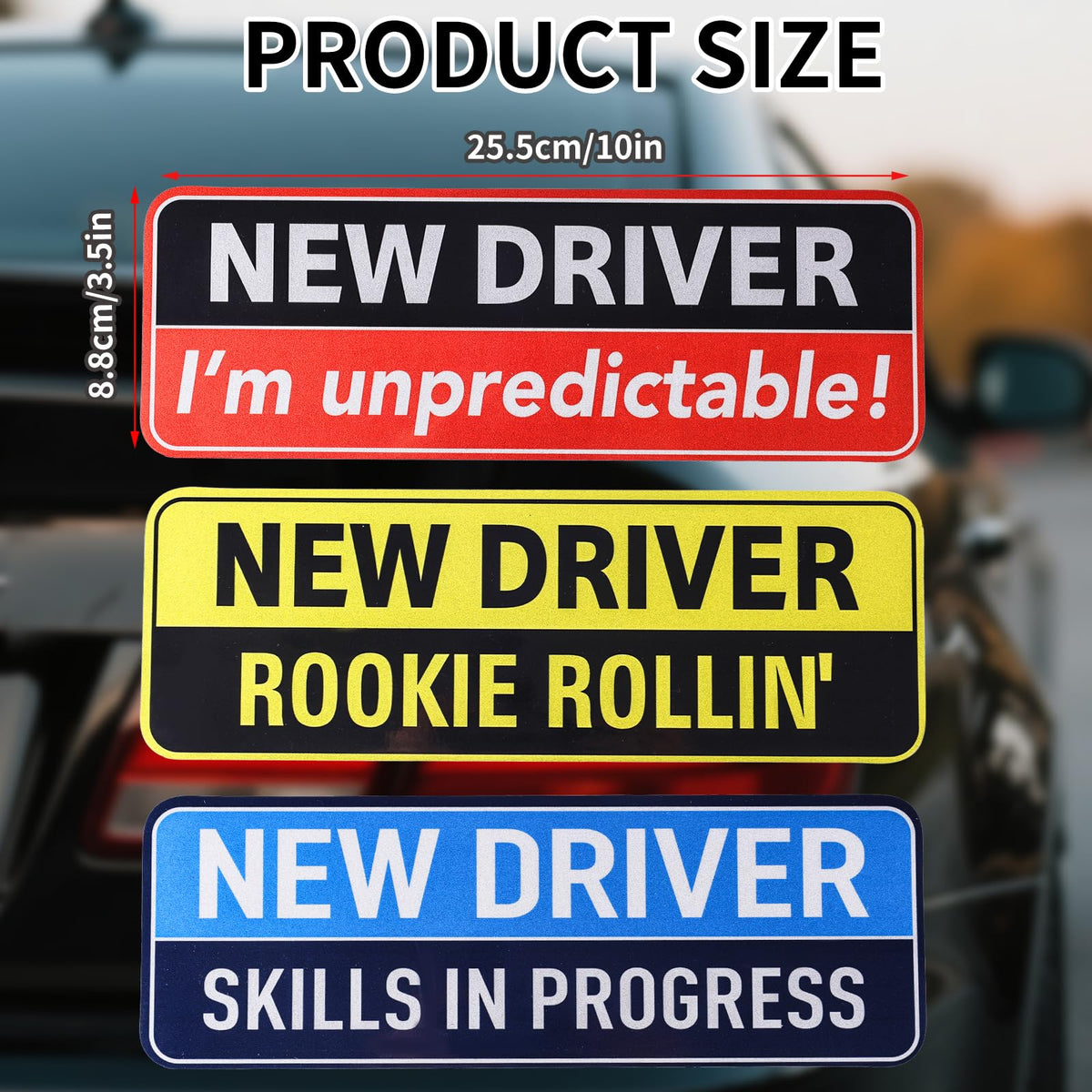 3 Pcs New Driver Magnetic Car Stickers, 10x3.5in Reflective Magnetic Bumper Sticker Set Removable Novice Driver Safety Attention