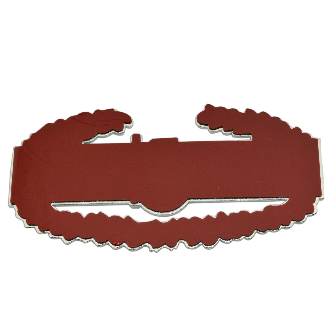 Q: What material is the Army Combat Action auto emblem made of?A: The Army Combat Action auto emblem is made of solid metal and plated with real chrome, ensuring durability and a premium look.