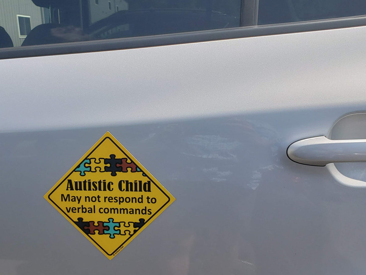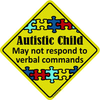 Autistic Child Emergency Magnet 6 X 6 Inch Auto Bumper Car Magnet (2 Magnets)