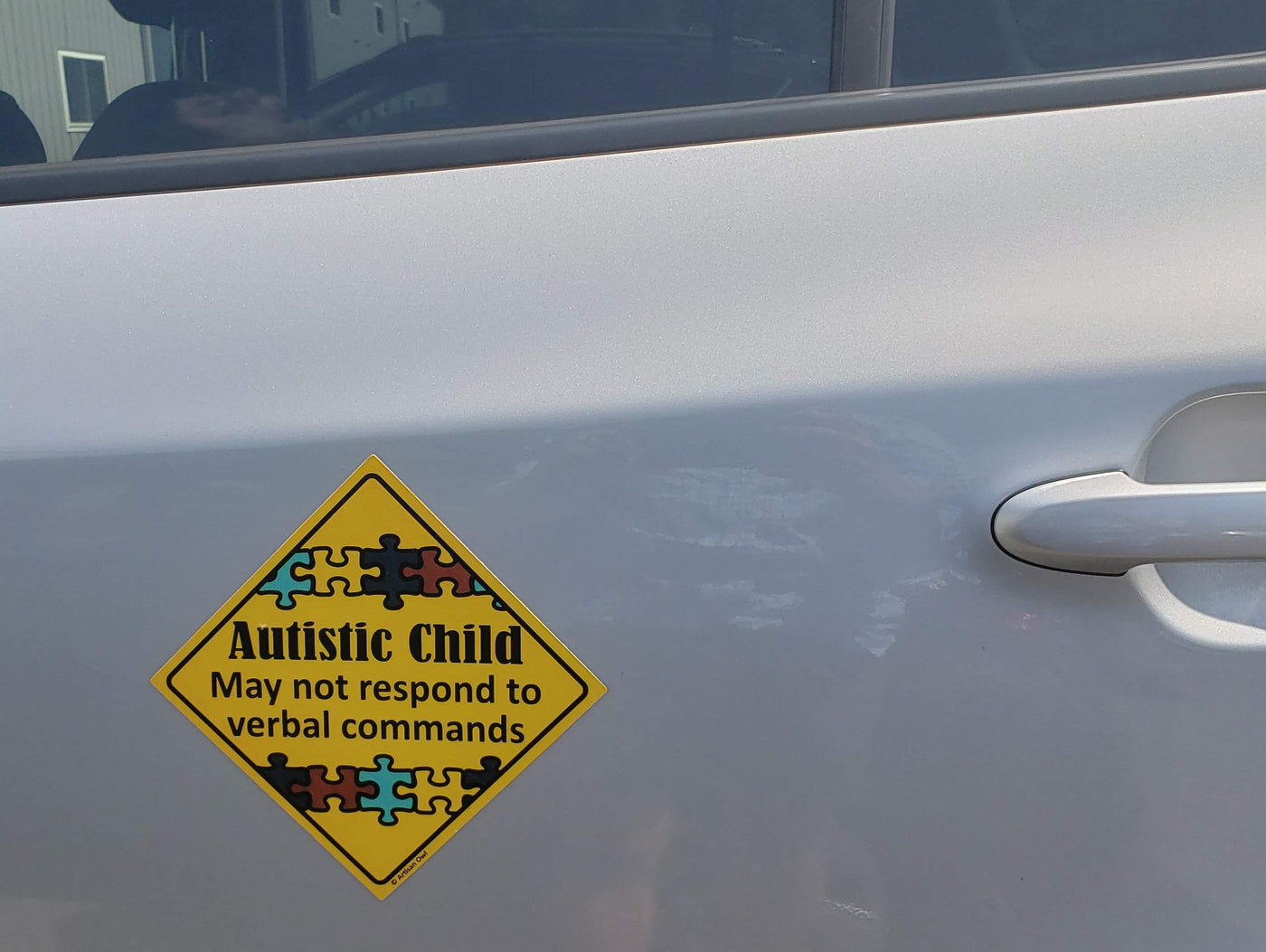Q: What is the purpose of the Autistic Child Emergency Magnet?A: The Autistic Child Emergency Magnet is designed to alert emergency personnel that there is an autistic child in the vehicle, helping to ensure appropriate care and communication in case of an emergency.
