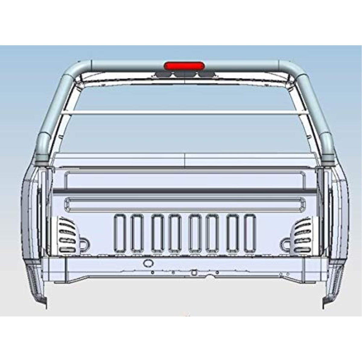 Q: Can auxiliary headlights be mounted on this roll bar?A: Yes, the design allows for auxiliary headlights to be mounted above the cab roofline, enhancing both functionality and off-road styling.