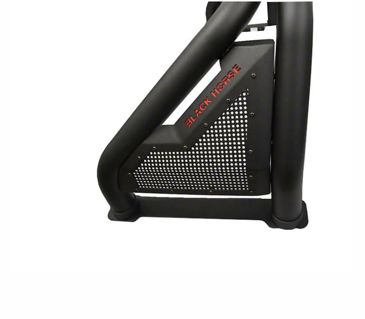 Q: What features does the Black Horse Gladiator Roll Bar offer?A: The roll bar features mandrel bent tubing for smooth, wrinkle-free OEM quality bends, an integrated third brake light with power and ground included, heavy-duty bed rails that extend down the truck bed, and pre-wiring for a 40" LED light bar.