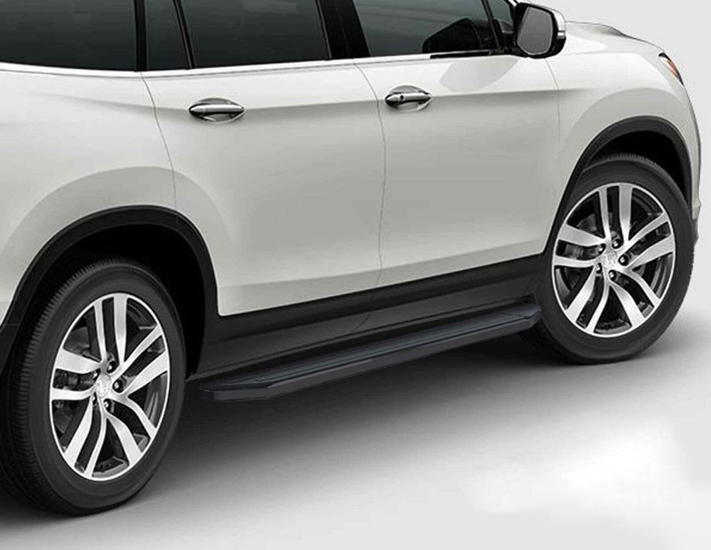 Q: What features enhance the functionality of these running boards?A: The Black Horse Peerless Running Boards feature a 5-inch stepping surface, allowing for easy entry and exit from the vehicle, along with an all-black design that adds a sleek look.