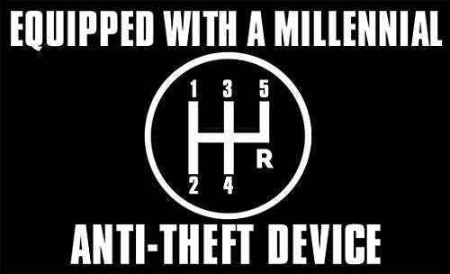 Black Medium - Equipped With A Millennial Anti Theft Device Sticker (Funny Stick Shift Manual Car (4.5 X 7.5 Inch)
