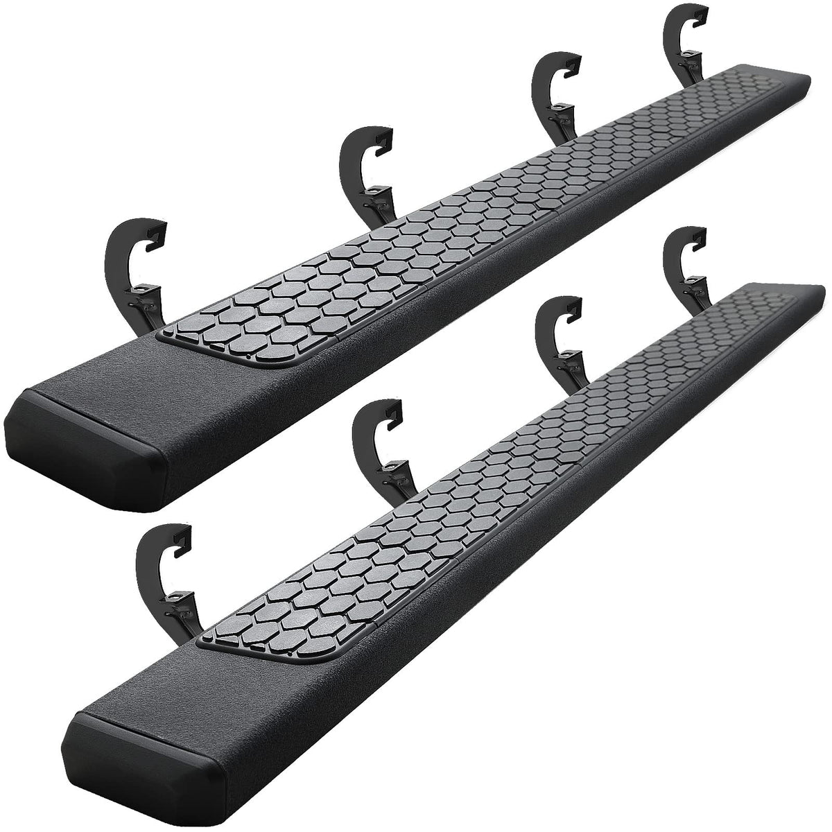 Q: Are the running boards designed for safety?A: Yes, the COMNOVA Running Boards feature a lengthened honeycomb-shaped anti-skid pedal design that provides a secure footing, making it safer for passengers to get in and out of the truck.