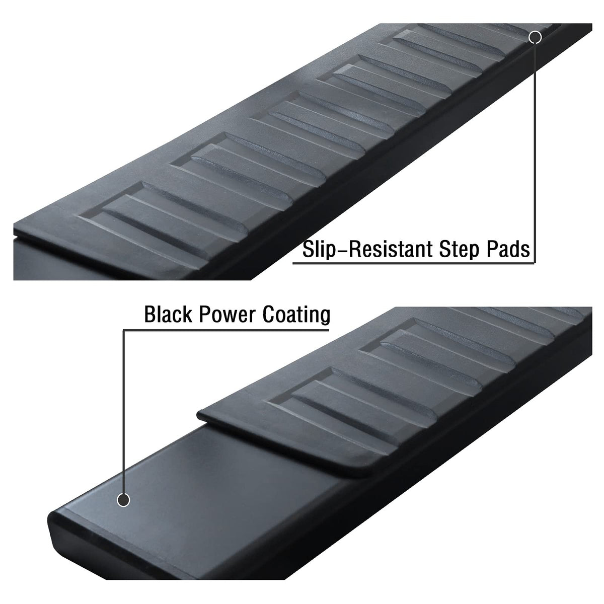 ?Running Boards?Give Your Dodge Ram An Prefect Aff-road Appearance While Providing A Convenient Step For Easy Entry Into Your Vehicle. Strength, Lightweight, And Corrosion Resistance For Long-Lasting Use.Compatible With:2009-2018 Ram 1500 Crew Cab 2010-2020 Ram 2500/3500 Crew Cab(Incl. 2019-2020 Ram 1500 Classic) Key Feature:-Material: Heavy Duty Carbon Steel-Color: Matte Black(Matte black looks more shiny)-Size : 6 Inches bar-Position: Left and Right-Surface FINISH : Matte Black Finished Tube +Plastic StepsPackage Content:-2 X Running Boards-Mounting Brackets and Hardware Notice:-100% Brand new in stock with good quality steel -No drillingWarranty:-Have any quality question,Free Return&Exchange within 90-day-Any questions,Please feel free to contact us.