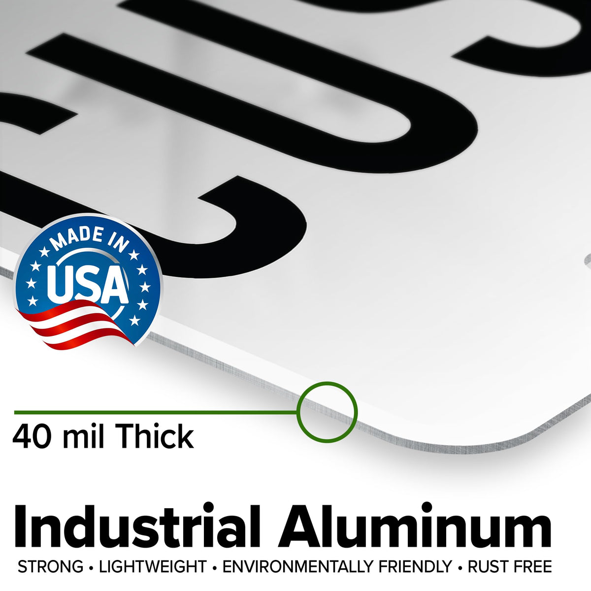 Durable and Long-Lasting Quality - Crafted from premium rust-free aluminum, our signs are built to last for years in both indoor and outdoor environments, maintaining their new look. Proudly made in the USA! | Weather-Resistant, No Fading - Designed to endure the harshest weather conditions, the graphics and text remain clear and vibrant, regardless of sun, rain, or snow. | Easy Installation with Pre-Drilled Holes - Each sign comes with four pre-drilled holes, making installation on any surface quick and easy-no need for adhesives or extra tools. | Optimal Size for Visibility - Thoughtfully designed to balance clarity and subtlety, this sign