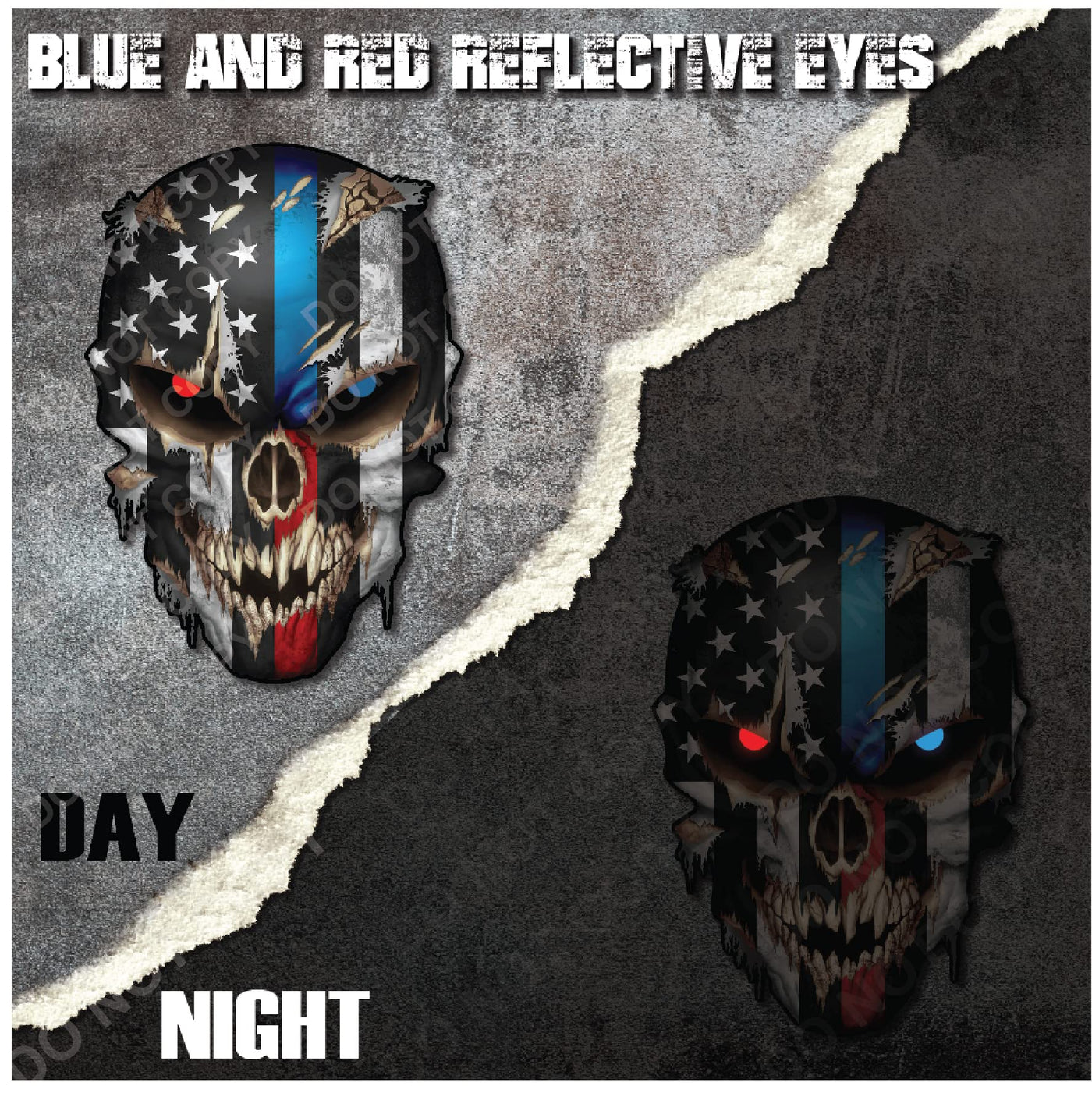 Description: You are buying an ORIGINAL DESIGN Thin Red Blue Line I Support Police and Firefighters Skull sticker! Show your support for our brave first responders in rugged style by tagging your Car, Truck, SUV, Motorcycle, Boat, RV, or ATV with one of these superior skull stickers!. They are also great for helmets, coffee cups, laptops, pretty much any clean, smooth surface! Each decal is printed on 3M high quality vinyl using industry leading eco-solvent ink and meticulously cut to shape using state of the art cutting technology. They are printed in vivid 720x720 dpi using the best materials available. We've spent a great deal of time creating these unique, high quality decals. We do our very best to make every TRL and TBL skull that goes out our door the best it can possibly be. These truly are beautiful decals and you can only get them here! Quantity: 1 Pack Dimensions: (1) 12'' tall skull Material: 3M Vinyl with Air Release Comply Ink: Eco-solvent Roland Brand Ink with UV inhibitors