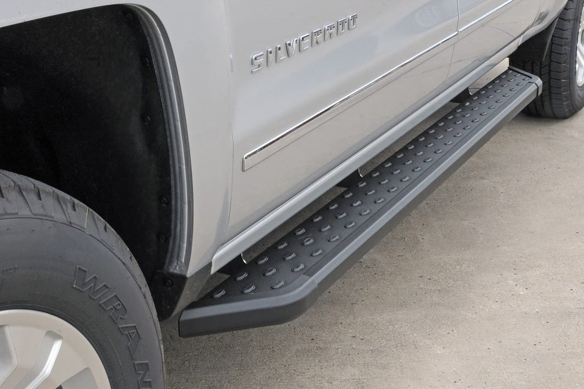 Dee Zee NXt Steps (board) - The NXt step is designed for todays trucks. A universal board combined with custom fit brackets (sold separately) fit all listed applications. The lightweight aluminum powder coated is sealed with a black top plate. It features protective accent trim that wraps the step. Slip resistant raised rubber grommets on step area ensure a secure footing. Required custom fit bracket kits sold separately. Crew Cab - 6 in. x 86 in. - Black/Black
