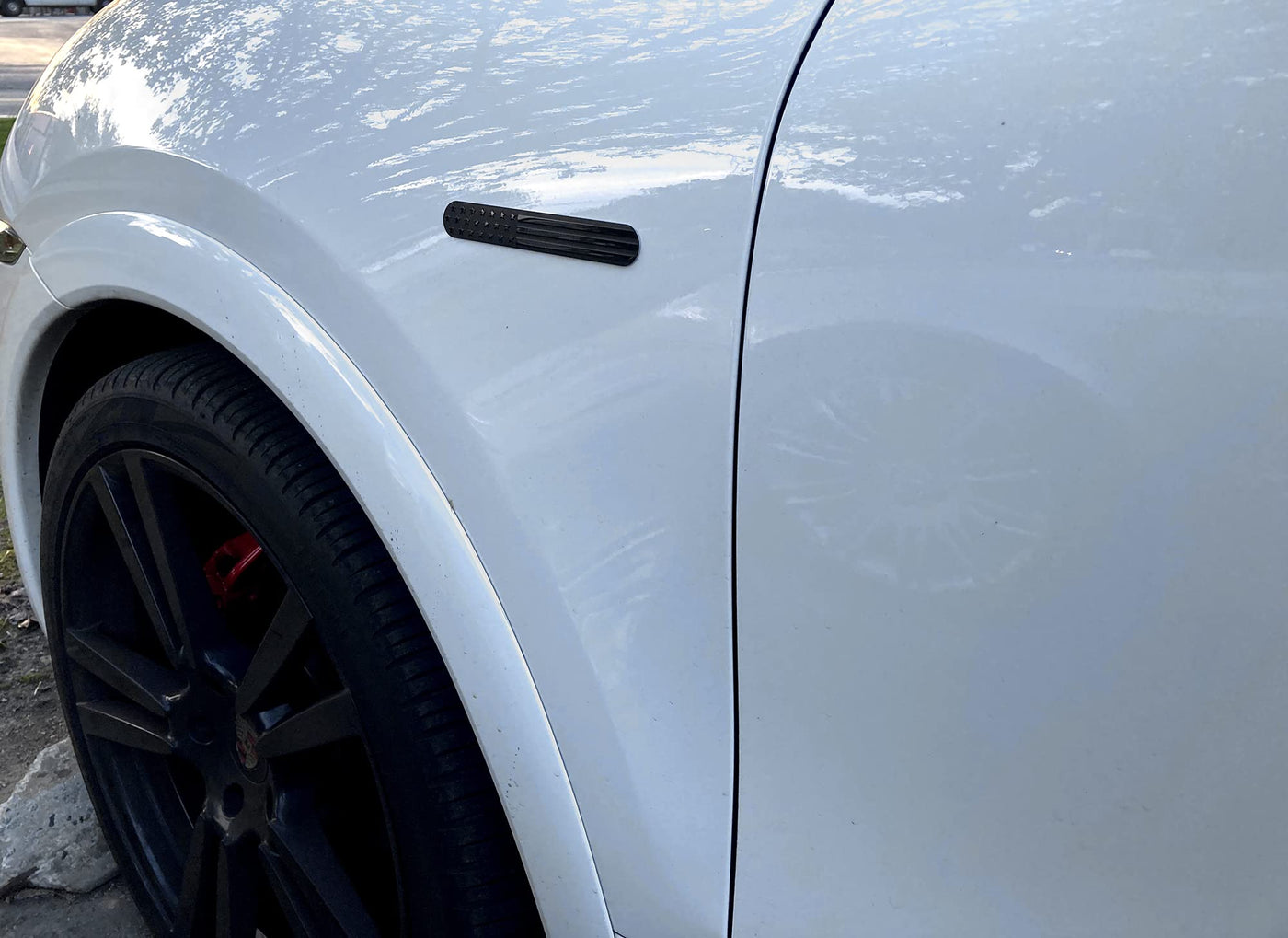 2-Pack. Made Of Aircraft Aluminum, Embossed. Flexible. Thickness: 1Mm.. Hand Polished And Black Glossy/Matte Finish. Comes With Clear Plastic Shrink-Wrap Protecting The Surface. (The Protective Plastic Shrink-Wrap Needs To Be Removed After Installation). Uv Resistant. Durable Enough To Last Under All Weather Conditions. Emblem Size : 6''X1'' Comes With 3M Adhesive Back For Stick On.