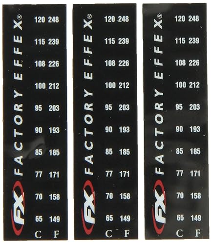 Q: What is the temperature range of the Factory Effex Temp Specialty Stickers?A: The Factory Effex Temp Specialty Stickers can withstand temperatures ranging from 149 to 248 degrees Fahrenheit (62 to 120 degrees Celsius), making them suitable for various high-heat applications.
