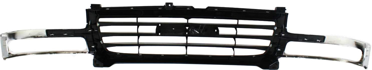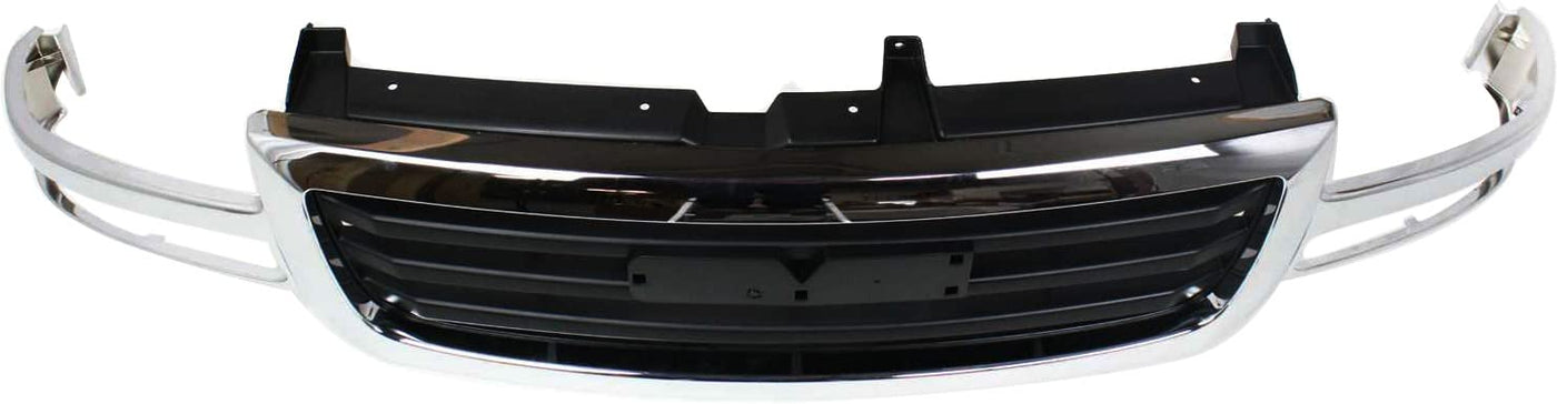 Q: What is the color and design of the grille assembly?A: The grille assembly features a chrome shell with a painted black insert, providing a stylish and modern look to enhance your vehicle's appearance.