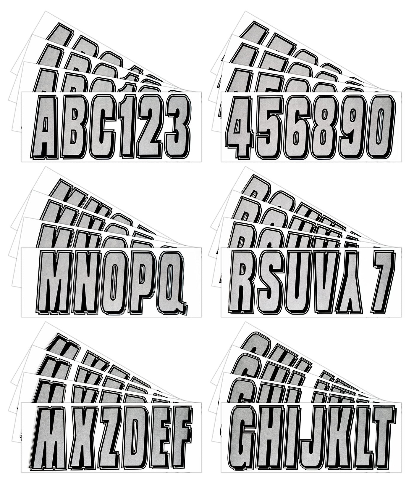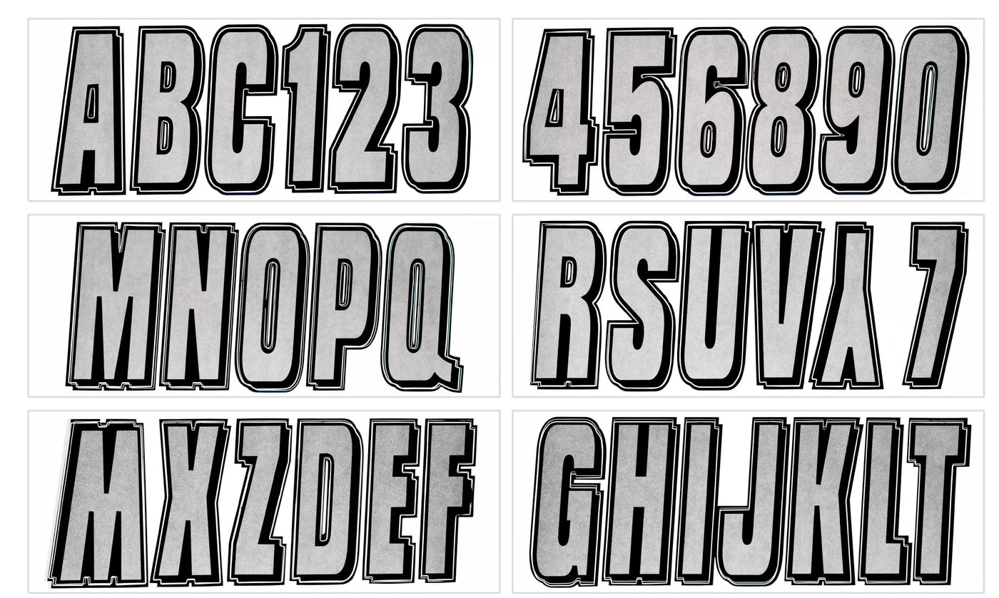 This Series 320 Factory Matched 3-Inch Registration Kit From Hardline Products In Silver/Black For Boats And Power Watercraft (Model Siblk320) Features A Block Font With Solid Color Accented By A Drop Shadow. This Kit Contains Four Sets Of A-Z Letters And Four Sets Of 0-9 Numerals. Easy To Mount. Just Peel And Apply. These Registration Stickers Are Uv Coated To Protect From Fading, And They'Re Also Fuel And Scratch Resistant. They'Re Made From 100 Percent Lead Free Inks And Vinyl With A Waterproof Superstick Adhesive, And They'Re Tested To Speeds Up To 100 Mph. The 3-Inch Registration Sticker Height Meets Uscg Requirements When Installed Correctly. Hardline Products Is An Industry Leader In After-Market Power Sports Accessories, Offering Matched Registration Letter And Number Kits, Decal Application And Removal Fluid, And More For On- And Off-Road Motorcycles, Boating, Personal Watercraft, All Terrain Vehicles (Atvs), Snowmobiles, And Karting. Made In The Usa.