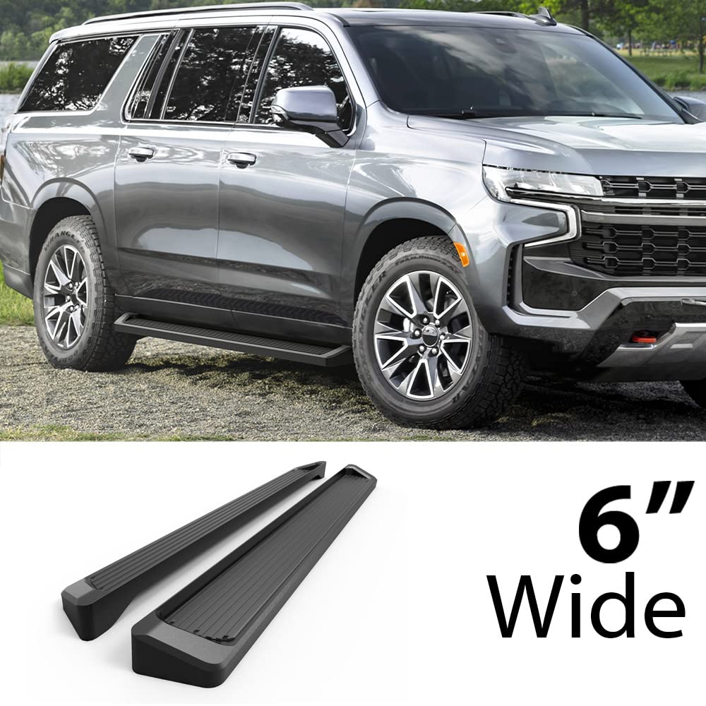 Fitments Compatible With Chevy Suburban 2021-2022 Fitment Note:Sport Utility 4-Door Introduction Hd Ridez Running Boards Fit Good And Look Good On Your Truck. These Custom Fit Running Boards Have A Simple, Clean Design That Put Bulky And Over Styled Nerf Bars To Shame. The Lightweight Yet Durable Aluminum Frame Supports Up To 300 Lbs Without Bending. Having Full Length Tread, These Running Boards Offer Safe Footing And Superior Access To Your Vehicle. Available In 4, 5, 6 Inch And A Black Powder Coated Or Polished Aluminum Finish, Hd Ridez Running Boards Will Outfit Your Truck In Style. Specification Material: 6061 Aircraft Aluminum Bars + Steel Brackets Finish: Matte Black Powder Coated Finish Style: Low Profile Design - Solid One Piece - 85' Long Installation: Rocker Panel Mount Item Offered Pair Of Side Steps & Mounting Brackets Kit & Instruction