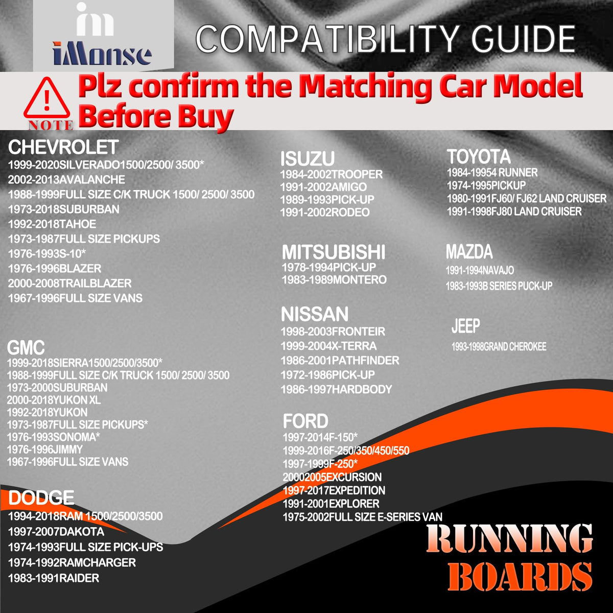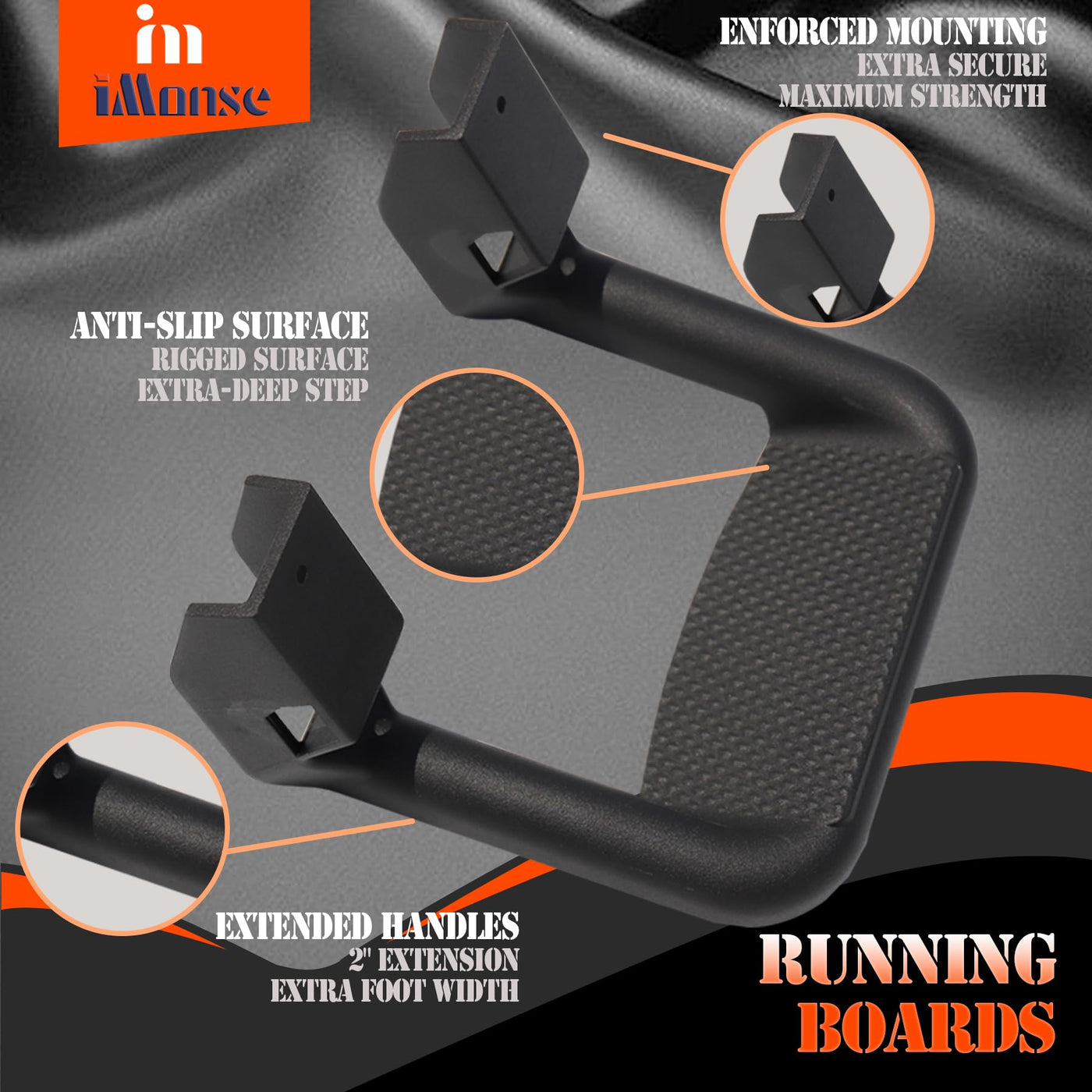 iMonse 2Pcs Universal Black Aluminum Side Step Bars Replacement for Trucks from Chevy (Chevrolet), Ford, Toyota, GMC, Dodge RAM,