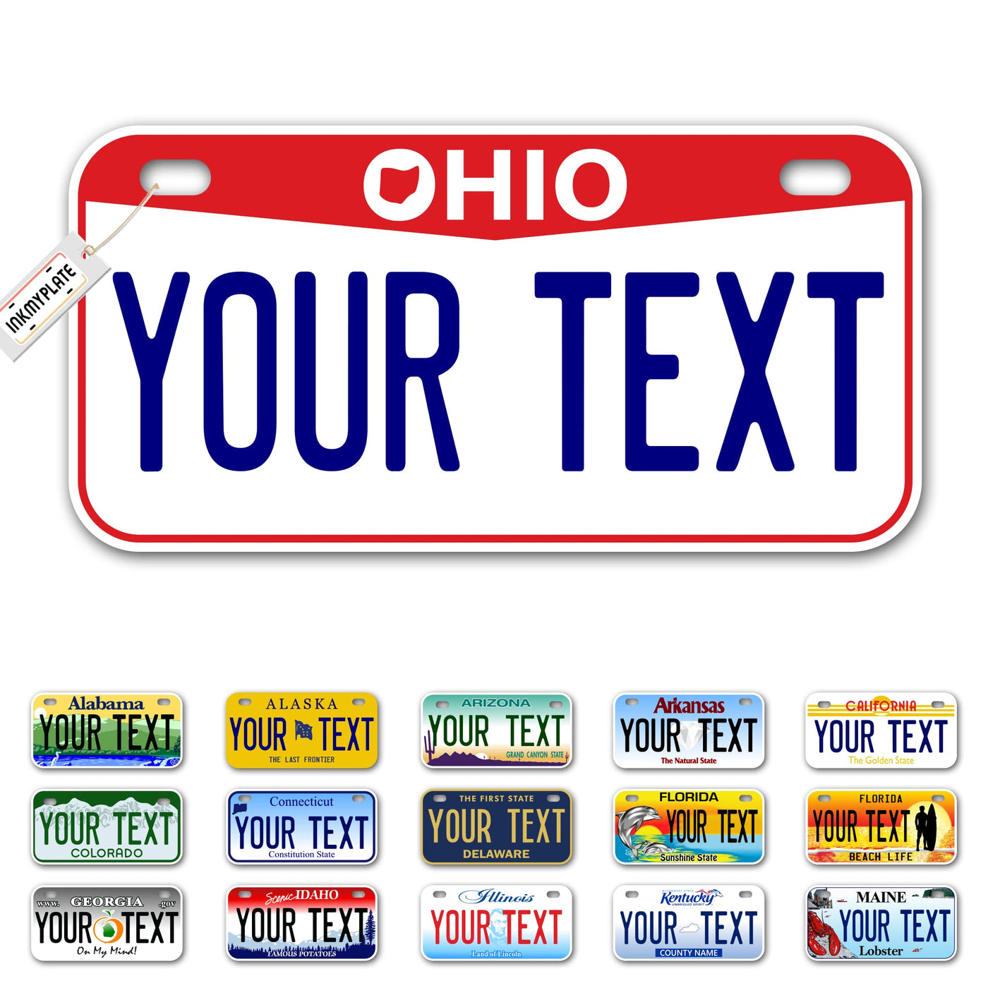 Inkmyplate Personalized Ohio Red Small License Plate | Bike 6X3 Inch | Select From All 50 States | 3 Sizes | Custom License Plates For Kids Bicycles | Power Wheels | Usa Thick .040 Aluminum
