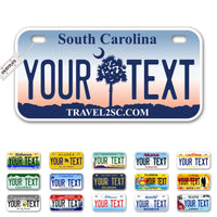 Our License plates are the most unique souvenirs from the State of South Carolina. They are made of thick .040 aluminum metal with standard mounting holes. The plates are waterproof, Anti-Rust, weather resistant and very durable. Our plates come with pre-drilled holes for quick and easy mounting on, fits your car, truck, trailer, RV, Bikes, Golf Carts, Toy cars and more. Images are printed using the latest UV Laser printing technology for high-resolution and years of durability. Our custom plates are a great gift idea for your family and loved ones.