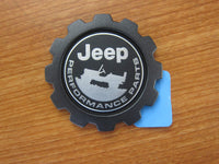 Q: What colors does the Jeep Performance Parts Gear Badge come in?A: The Jeep Performance Parts Gear Badge features a sleek design with a silver background and black image and text, adding a stylish touch to your vehicle.