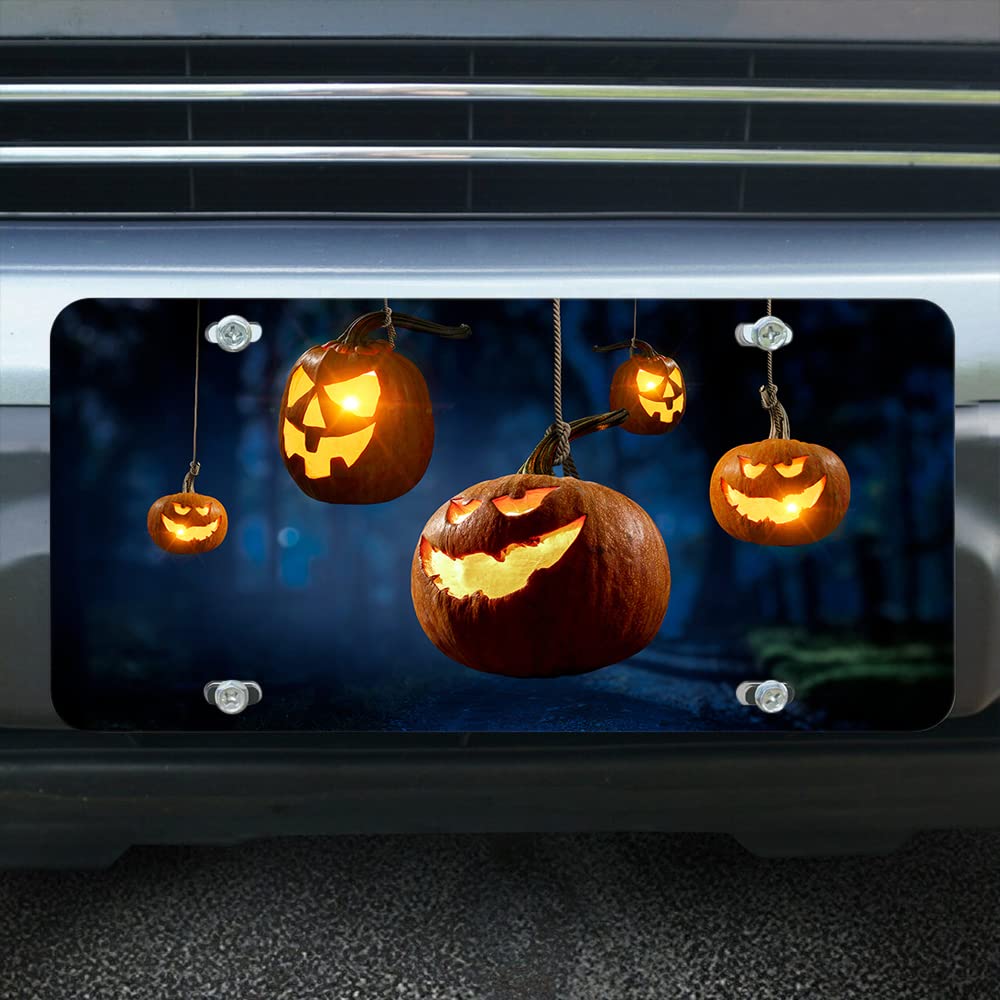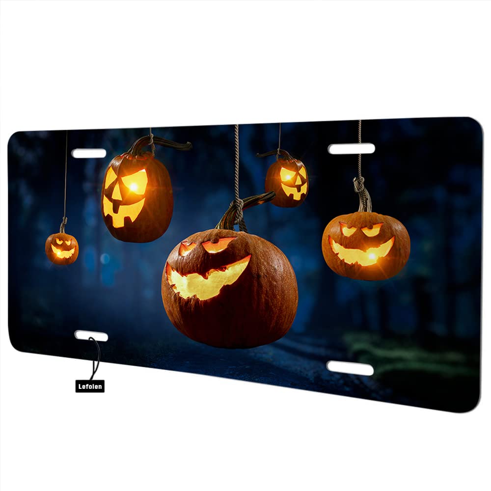 Lefolen Pumpkins Front License Plate Aluminum Novelty Halloween Hanging Lantern Pumpkins Metal Vanity Tags 6'' X 12'' For Men Wo