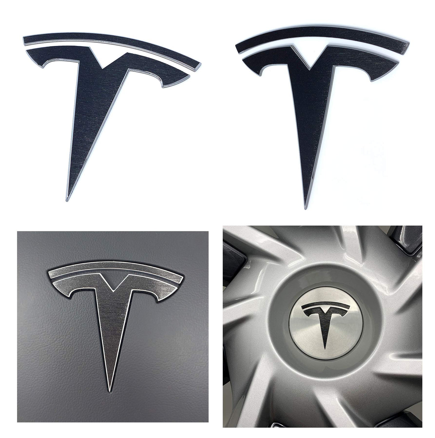 Logo Decal Wrap For Tesla Model Y, 11-Pc Set (Brushed Black)
