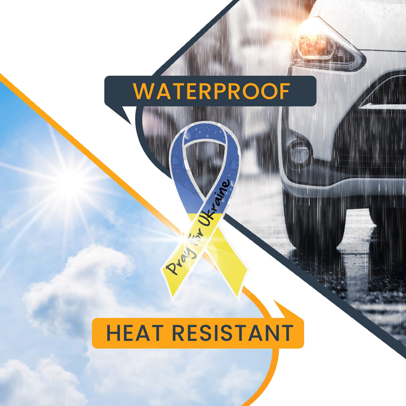 Q: Is the magnet suitable for outdoor use?A: Yes, the Magnet Me Up Pray for Ukraine Ribbon Magnet is heavy-duty, waterproof, and heat resistant, making it perfect for outdoor use on vehicles like cars, trucks, and SUVs.