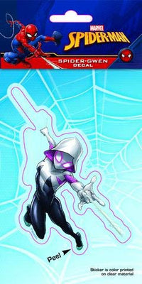 Q: How do I apply the Marvel Spider-Gwen Decal?A: To apply the Marvel Spider-Gwen Decal, simply peel it off the backing and stick it to the surface of your choice, such as your car window. It is recommended to clean the surface beforehand for better adhesion.
