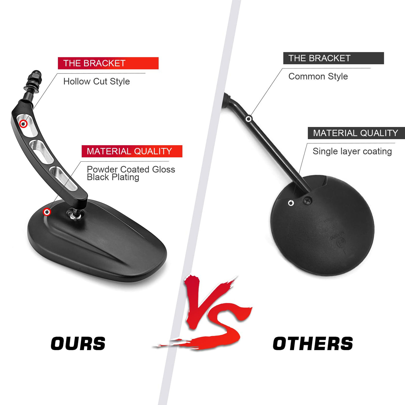 Q: What is the material and finish of the Mofun Gloss Black Mirrors?A: These mirrors are made of high-quality CNC Billet Aluminum and feature a powder-coated gloss black finish, ensuring durability and a sleek look.