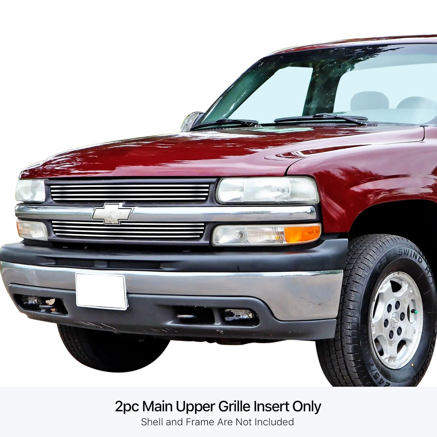Off Roader eGrille Compatible with Chevy Silverado 1500 1999-2002 & 00-06 Suburban Tahoe Main Upper Stainless Steel Chrome 8x6 Billet Grille Insert BGC-18C4931