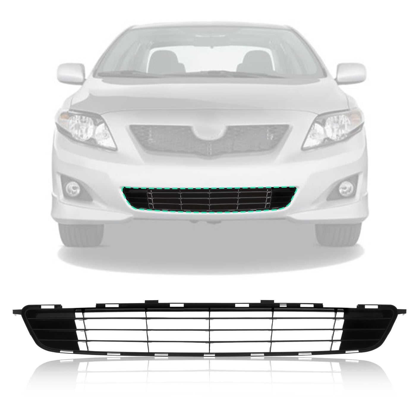 Q: What color is the Perfit front bumper lower grille?A: The grille is textured black, providing a sleek and stylish appearance that complements your Toyota Corolla.
