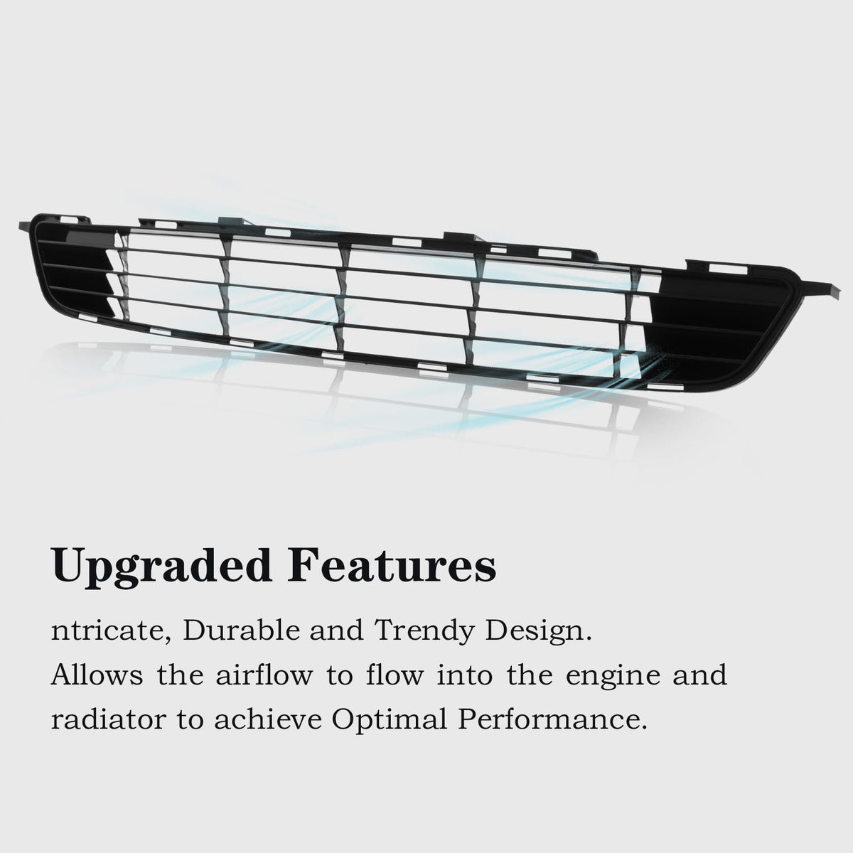Q: What materials is the Perfit front bumper lower grille made of?A: The Perfit front bumper lower grille is made of high-quality plastic, ensuring durability and a perfect fit for your vehicle.