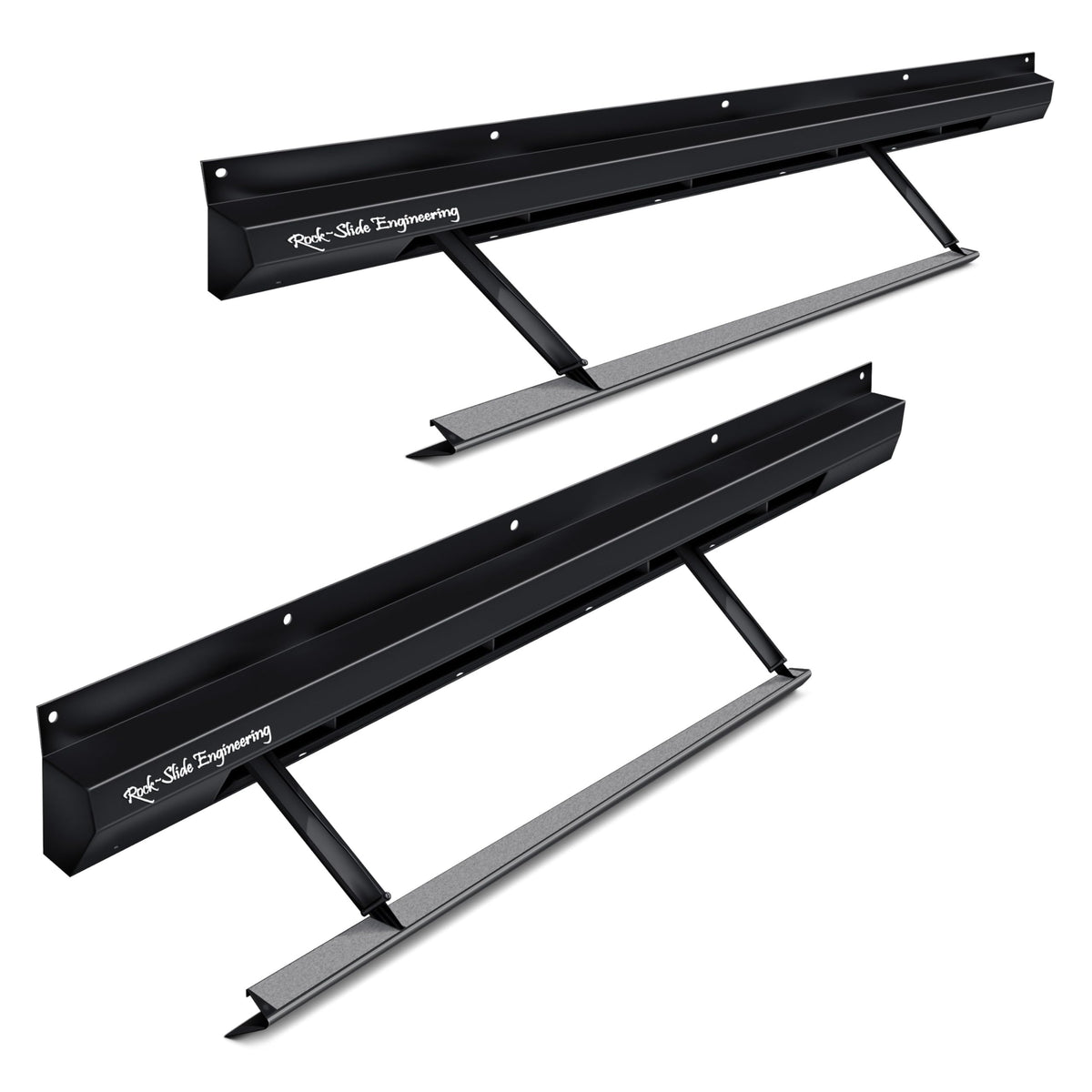Q: What is the weight capacity of the Rock Slide Engineering side step sliders?A: While specific weight capacity details are not provided, the 10-gauge steel construction and robust design support significant weight, making them suitable for regular use.