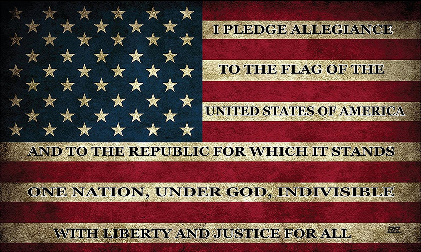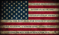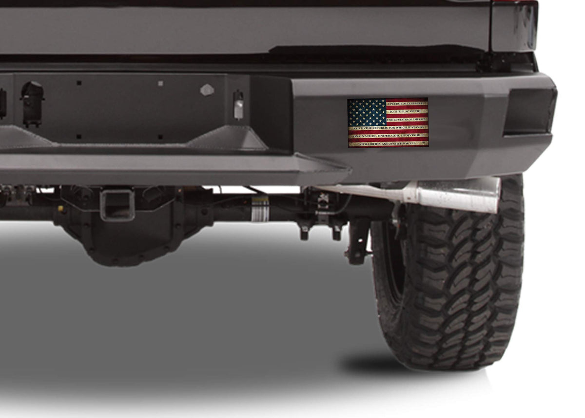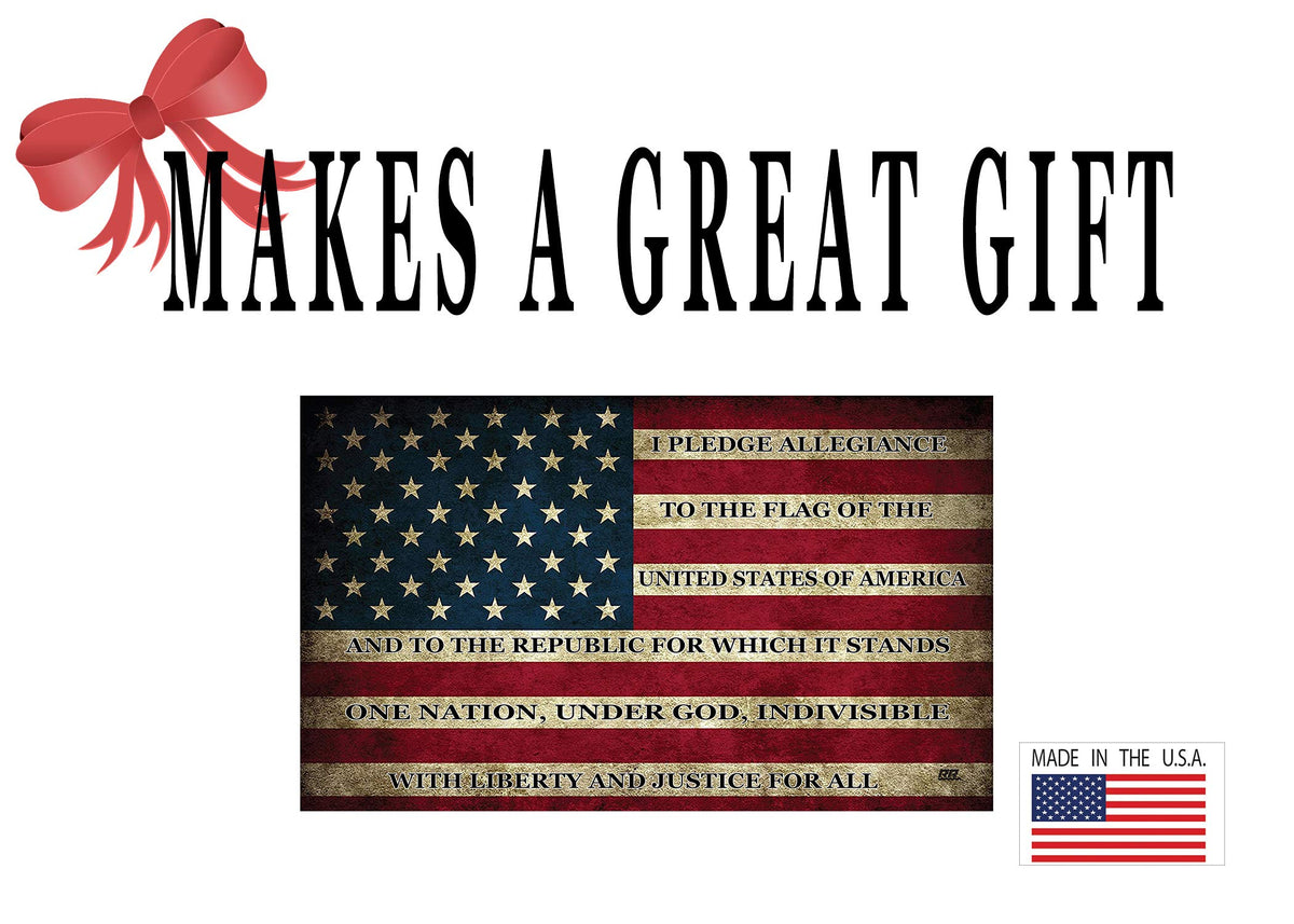 Made In The USA how Your Support For The United States With This Patriotic USA Flag Sticker. This Rustic Flag is a Prefect Way to Show Your Patriotism. Comes in Regular 5x3 inch size and a Large 10x6 Inch Size Pledge of Allegiance