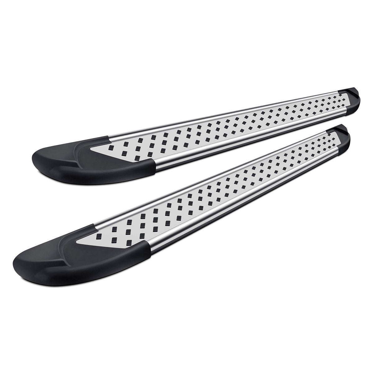 Q: How much weight can the Romik RPD-T Running Boards support?A: These running boards are constructed from aircraft-grade aluminum, ensuring they are lightweight yet highly durable, capable of supporting significant weight without compromising safety.
