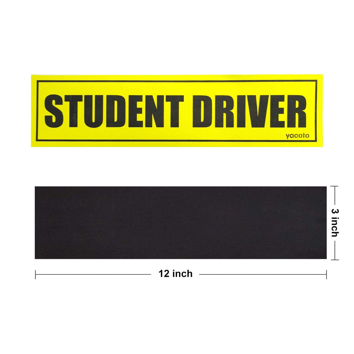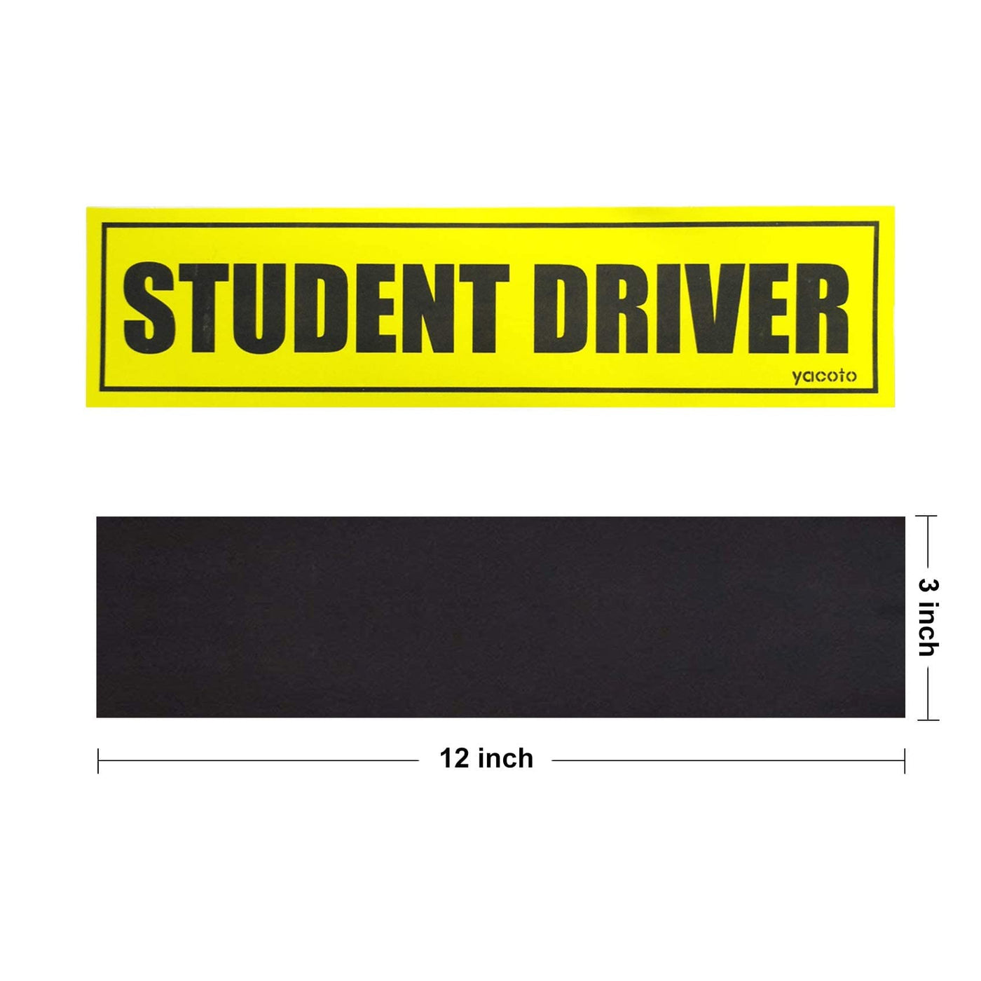 Q: What are the dimensions of the reflective student driver magnet?A: Each reflective student driver magnet measures 12 inches by 3 inches, making them easy to spot from a distance.
