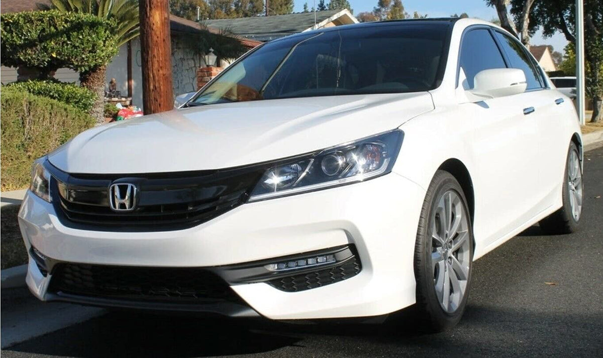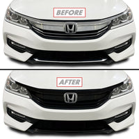 Slickmod Chrome Delete Blackout Vinyl Overlay For 2016-2017 Honda Accord Sedan Front Grill Trim (Full Kit, Gloss Black)