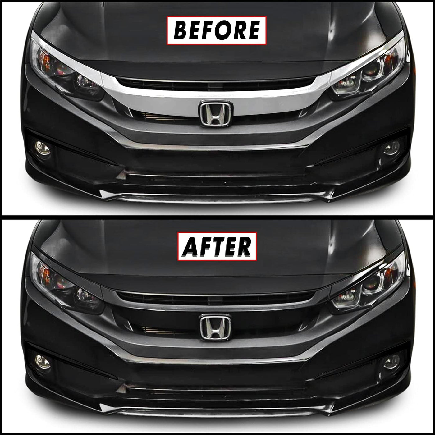 Slickmod Chrome Delete Blackout Vinyl Overlay For 2016-2021 Honda Civic Front Grill Trim (Gloss Black)