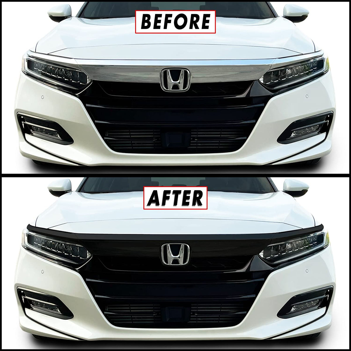Slickmod Chrome Delete Blackout Vinyl Overlay For 2018-2020 Honda Accord Sedan Front Grill Trim (18-20 Front Grill, Gloss Black)