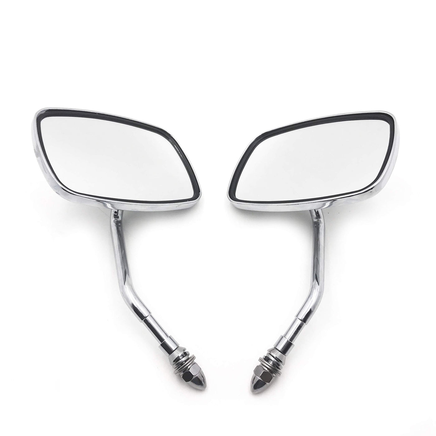 Q: What is the size of the mirrors?A: Each mirror measures approximately 121mm (4.75 inches) in length and 82mm (3.25 inches) in width, with a stem length of about 145mm (5-7/16 inches), making them a suitable size for a wide range of motorcycles.
