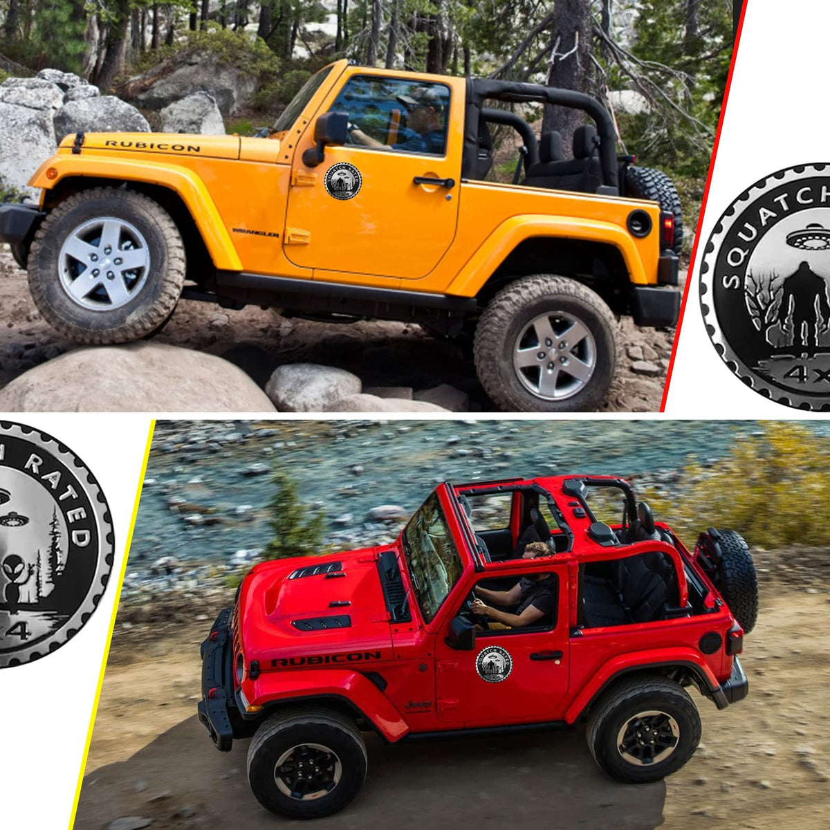 Squatch Aliens Badge Rated Car Emblem, 4 X 4 Metal Automotive Bigfoot Badge 3D Metal Car Badges Emblems Round Emblem Decals Car Badge Decals Stickers Compatible With Jeep Wrangler Vehicles Trucks Suv