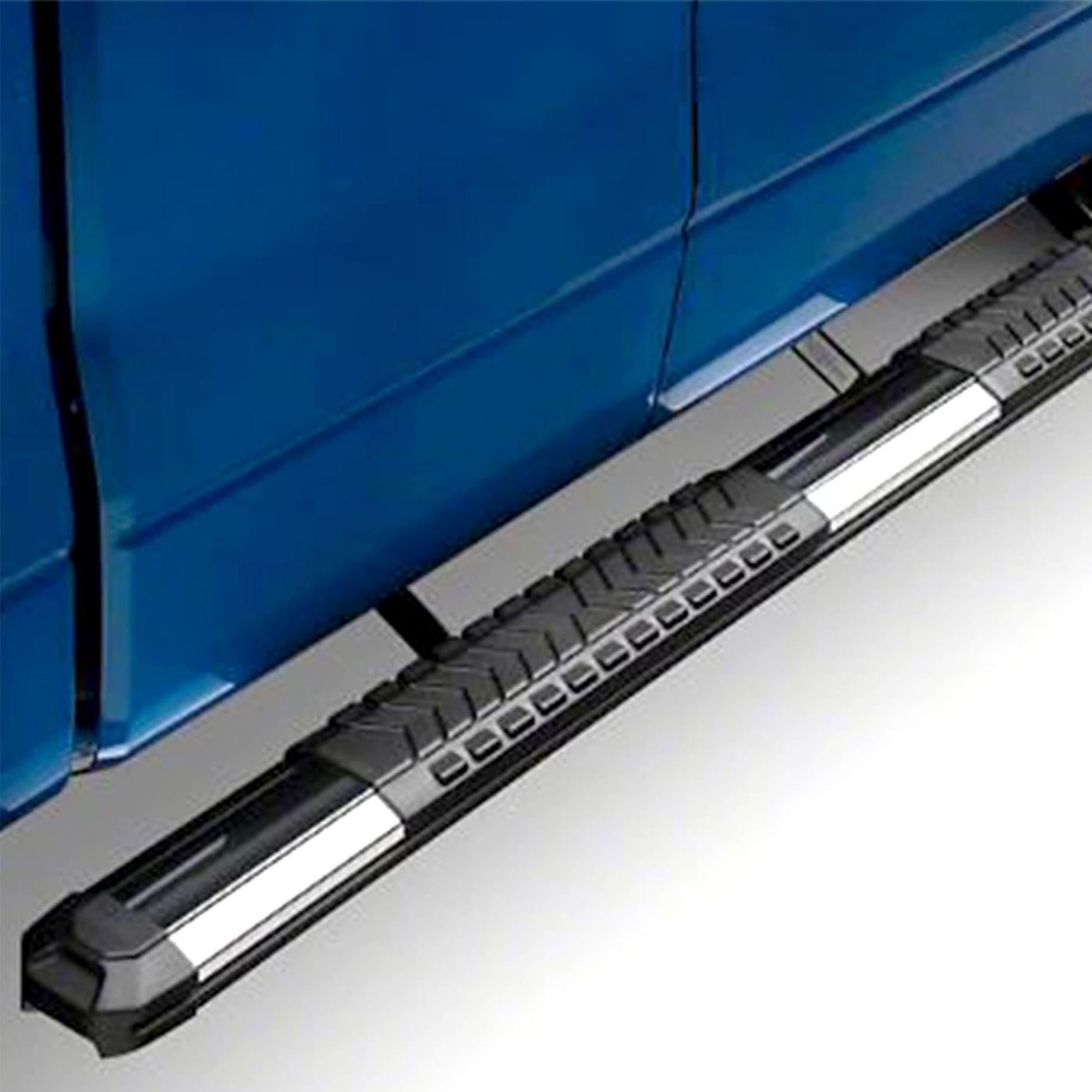 Q: What materials are used in the construction of the running board?A: The running board features an all-Stainless-Steel design with a durable polymer core and a wide 5-inch non-slip step pad for safety and stability.