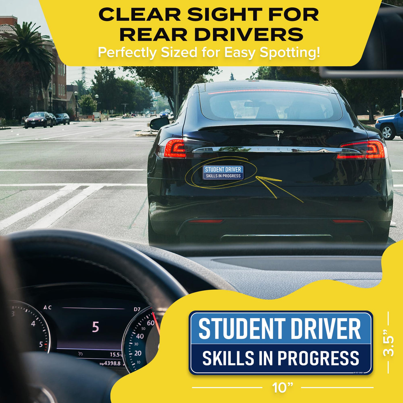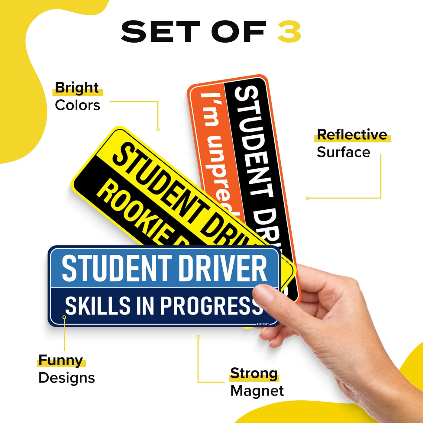 Get Our Enhanced Set Of Three Large Student Driver Magnets, Each At 10'' X 3.5'', Designed For A Strong Hold On Any Metal Car Surface. They Won'T Work On Fiberglass, Plastic, Or Heavily Repaired Areas. This Four-Pack Offers Flexibility To Cover All Angles Of Your Car Or Multiple Vehicles. They'Re Removable When Not In Use, Offering An Ideal, Non-Damaging Safety Solution. They Easily Peel Off And On Without Residue, Unlike Typical Stickers. Our Magnet Pack Combines Safety With Style, Noticeable Enough For Effective Caution But With A Charming Edge. Perfect For New Learners Or Those Fresh On The Road And Built To Endure Any Weather. Please Ensure Your Car Is Metal Before Purchase.