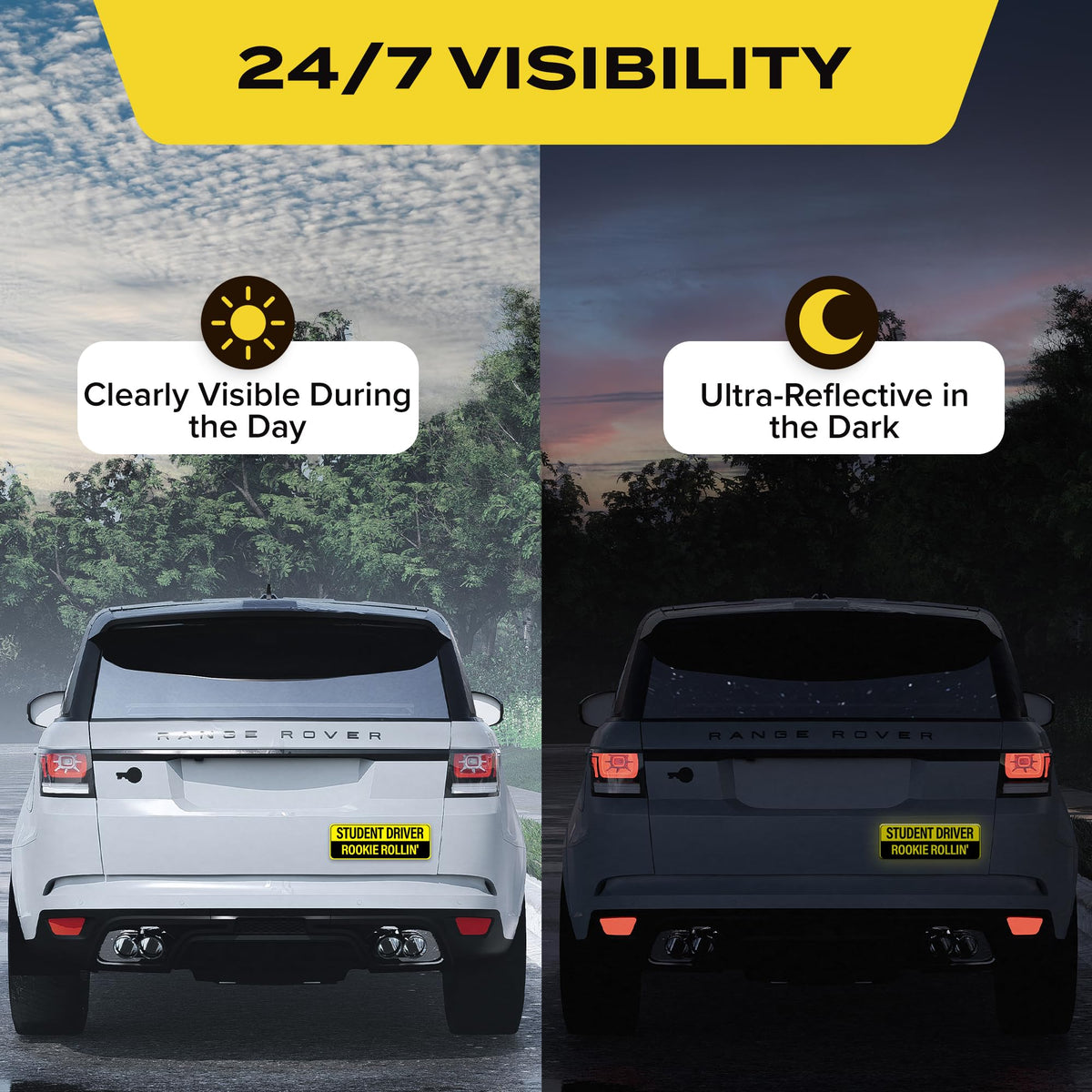 Q: Are these magnets weather-resistant and suitable for night visibility?A: Yes, our student driver magnets are made from highly reflective, weather-resistant materials, ensuring they remain visible at night and in poor weather conditions for enhanced safety.