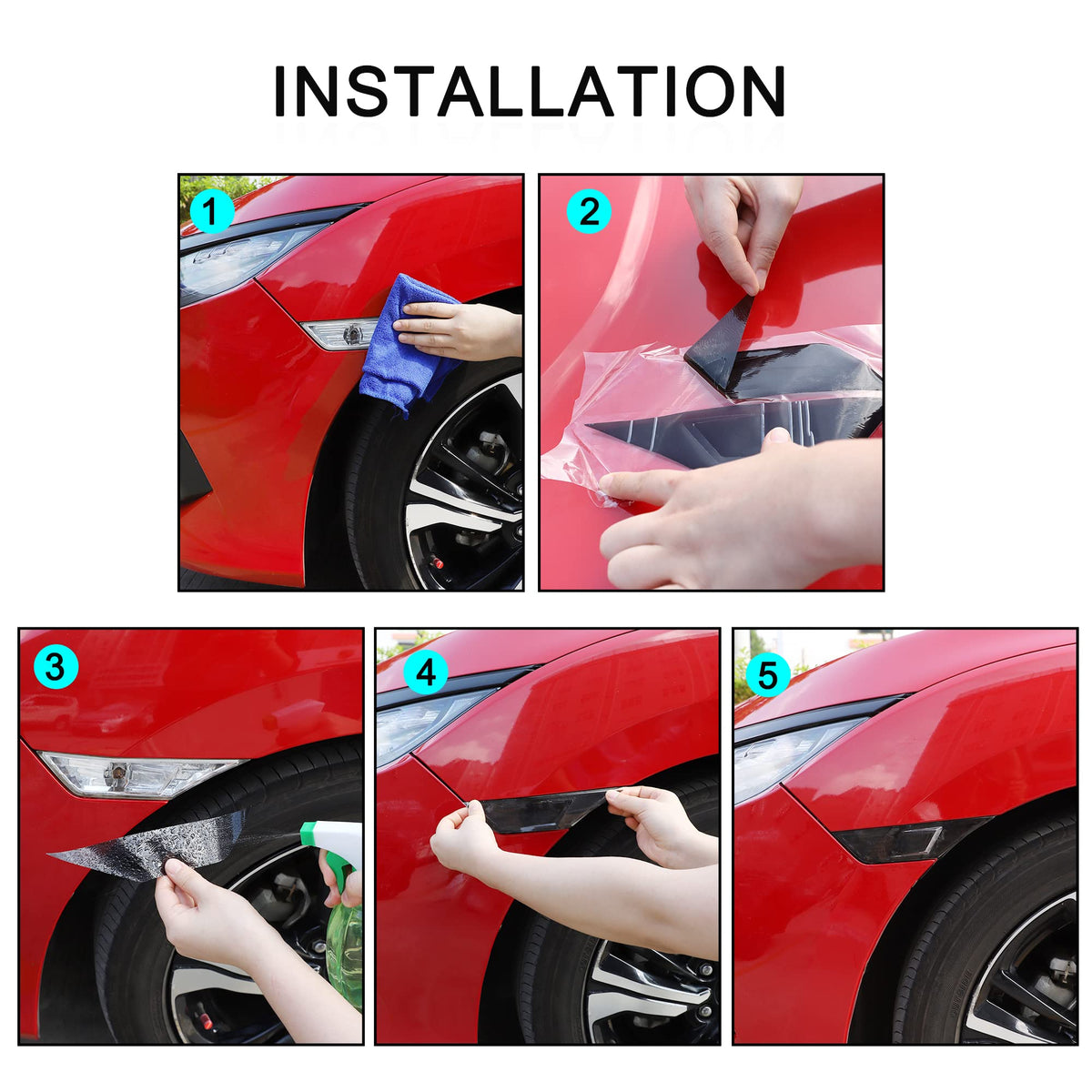 Q: What are the benefits of using this vinyl film on my car?A: The vinyl film not only provides stylish customization for your Honda Civic but also offers protection against scratches, enhancing the overall aesthetic of your vehicle. Additionally, it allows for light transmittance, giving your fender lights a unique look.