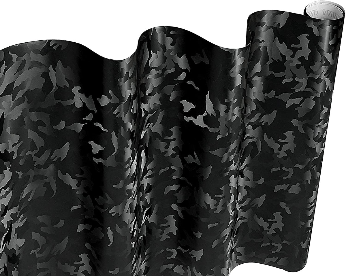 VViViD+ 2020 Edition Black Stealth Medium Pattern Camouflage Vinyl Wrap Roll (4ft x 5ft)