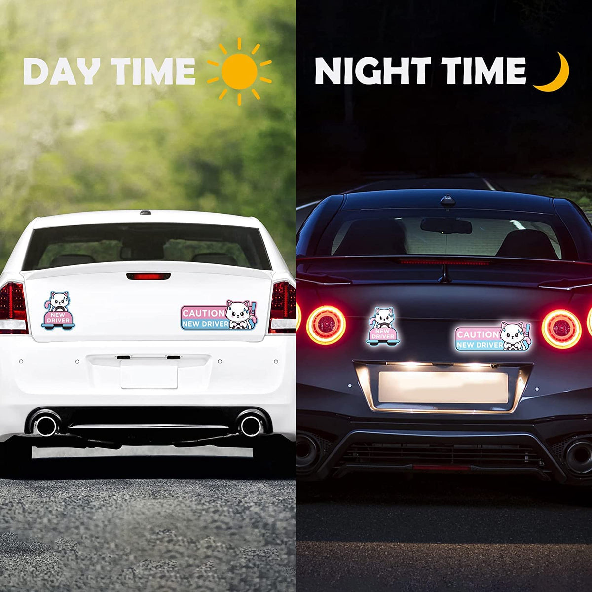 W1Cwey 4Pcs Cartoon Cat Student Driver Car Magnet, Cute New Driver Sign For Car Cartoon Reflective Student Driver Car Magnet Sticker Gift For Teen Reusable Car Bumper Safety Sign(Nervous Cat Patterns)