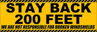 Yellow Stay Back 200 Feet We are Not Responsible for Broken Windshields Bumper Sticker (Safety Warning Vinyl Caution Sign Decal