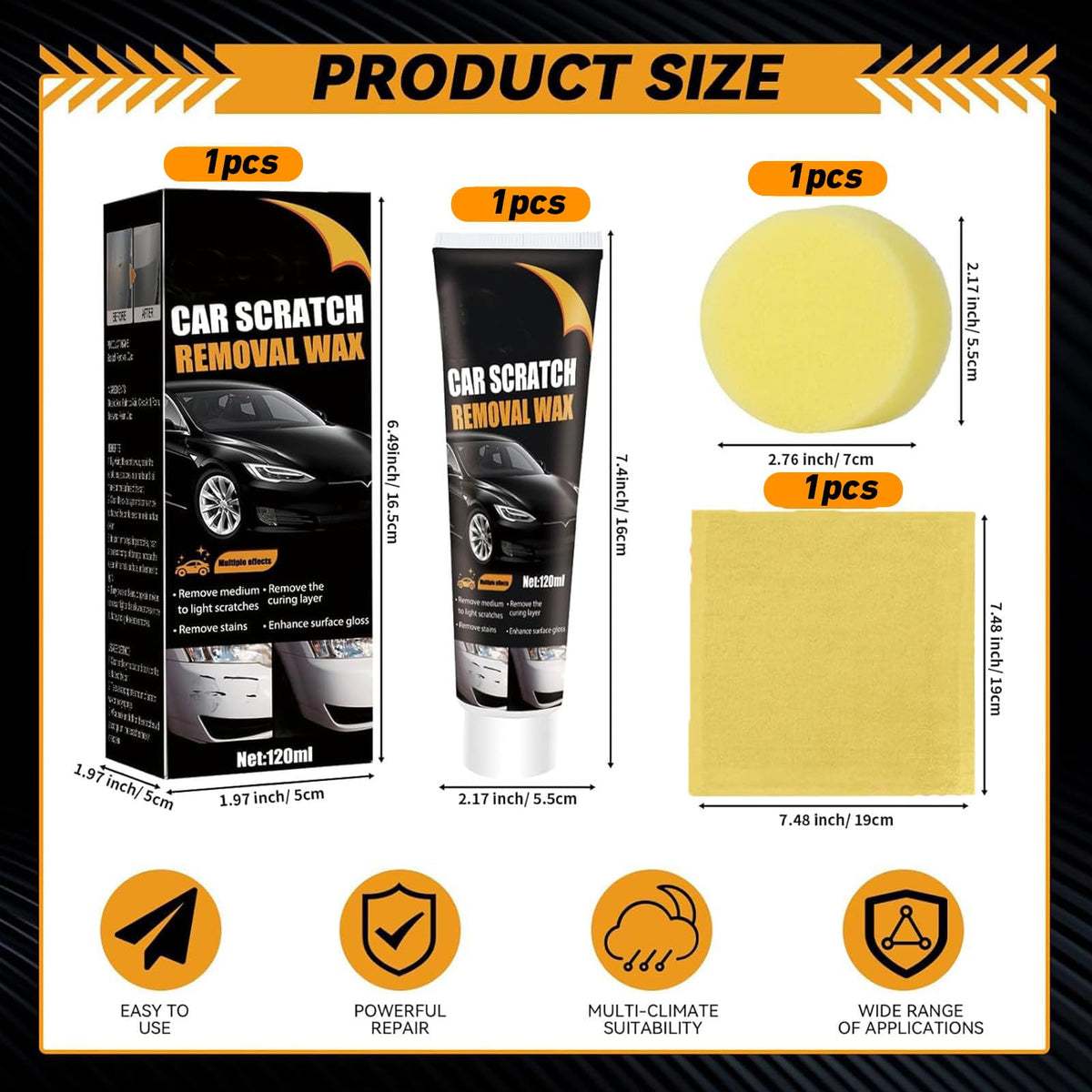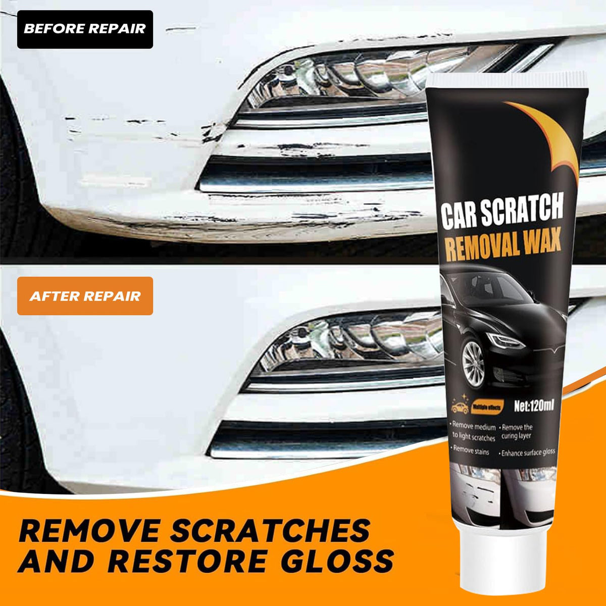 Transform your vehicle's appearance with this professional-grade scratch remover designed for deep scratches and unsightly marks. This advanced formula works effectively on various automotive surfaces to help restore your car's original shine and finish. The scratch remover is easy to apply and can help minimize the visibility of scratches, scuffs, and paint transfer marks that occur from daily driving. Perfect for both light surface scratches and deeper paint imperfections, this product helps you maintain your vehicle's aesthetic appeal without expensive body shop visits. The kit includes everything needed to treat scratches on cars, trucks, SUVs, and other vehicles. For best results, follow the detailed application instructions carefully. While results may vary depending on scratch depth and paint type, this scratch remover offers a practical solution for DIY car maintenance enthusiasts looking to keep their vehicles looking sharp.