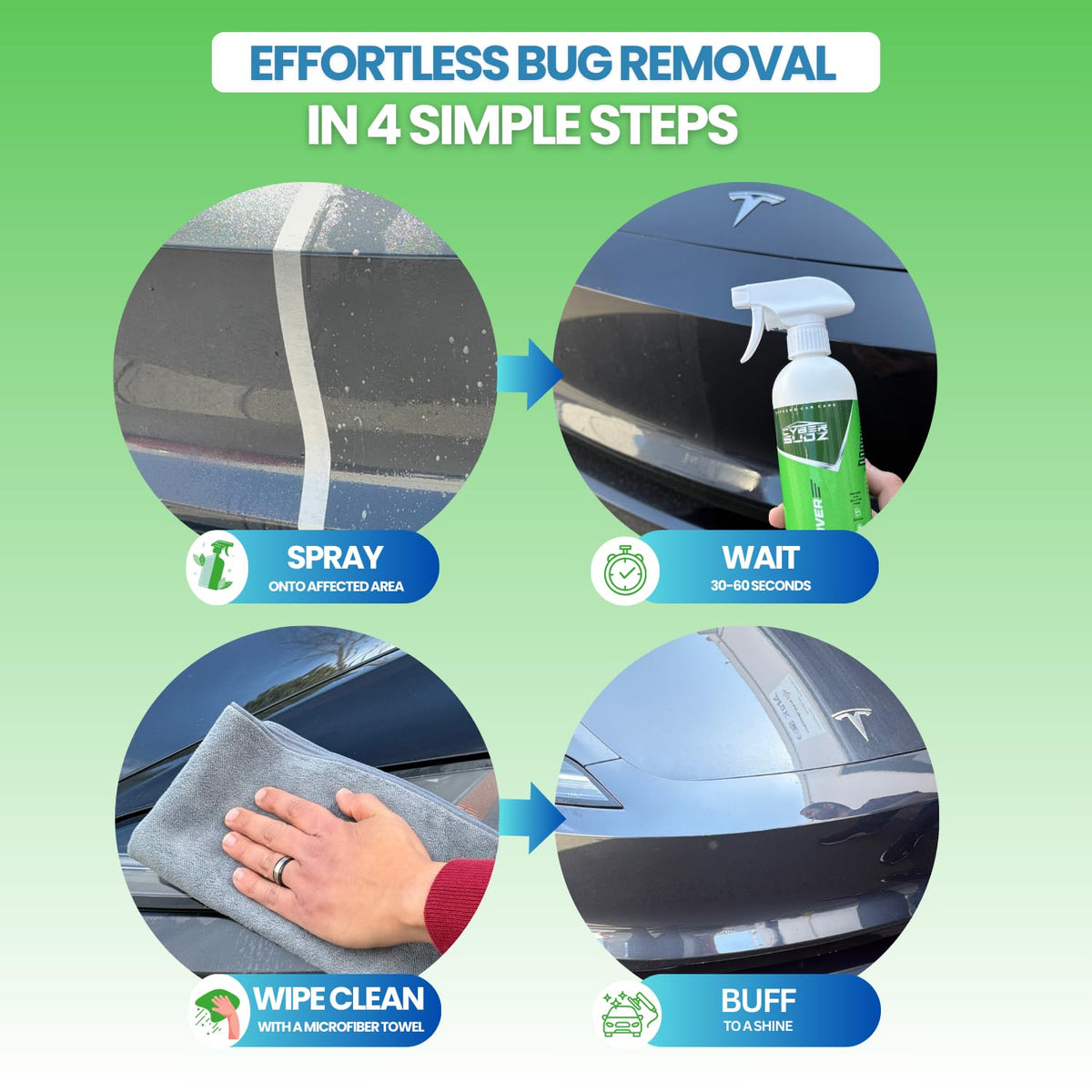 CyberSudZ Bug Remover for Cars Exterior - Spray Dissolves Bug Splatter, Bird Poop, Tar and Road Grime - Safe on Paint, Chrome, G