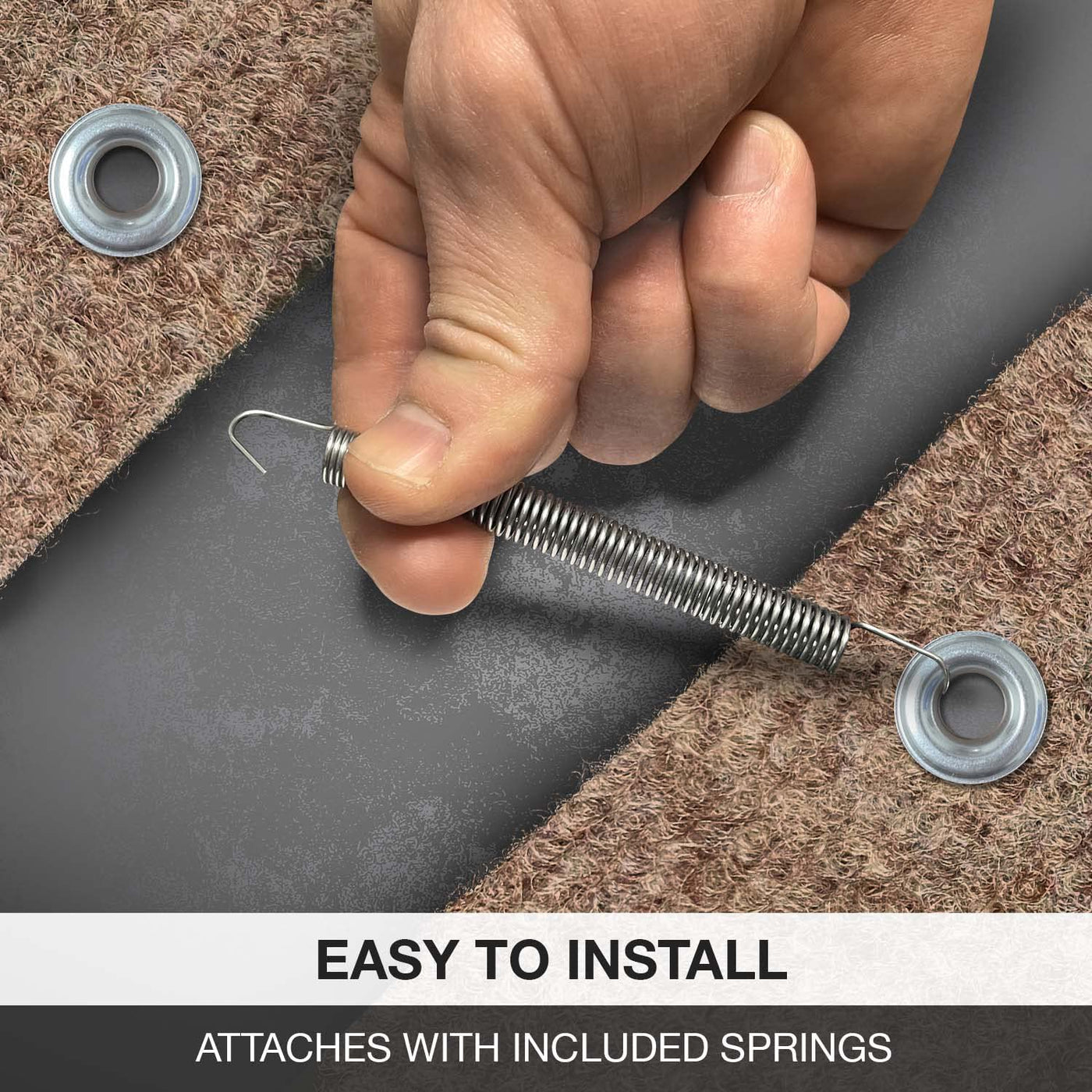 Q: How do I install the outrigger RV step rug?A: Installation is easy and requires no tools. The rug features three built-in grommet holes for easy adjustment and a secure fit.